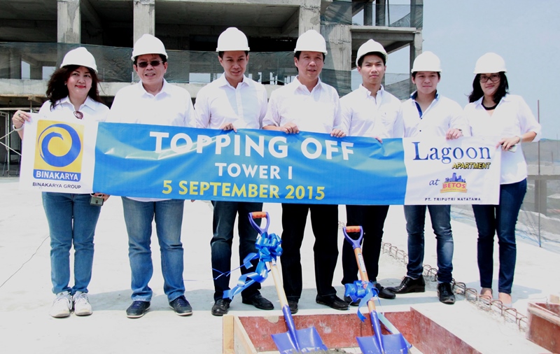 PROPERTI – Binakarya Group terus berakselarasi dengan terus menelurkan produk properti yang diminati pasar. Melalui bendera PT Triputri Natatama Sabtu lalu (5/9) melakukan prosesi topping off Lagoon Apartment Tower I. Produk ini merupakan bagian dari pengembangan superblok Bekasi Town Square (Betos) yang berlokasi di kawasan Cut Meutia, Bekasi Timur.