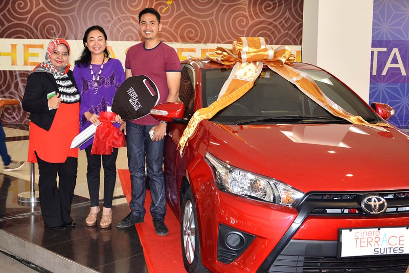 Dalam penarikan undian, 1 unit Toyota Yaris diserahkan kepada Dyah R. W sebagai pemenang. Direktur Business Unit Cinere Terrace Suites PT. Megapolitan Developments Abraham Budiman yang menyerahkan hadiah dalam acara “Fabulous Red” di Cinere Bellevue Mall. Sementara itu, 4 hadiah handphone lainnya diserahkan oleh Desi Yuliana selaku Direktur Marketing dan Fanny S. Sutanto selaku Corporate Secretary PT. Megapolitan Developments.