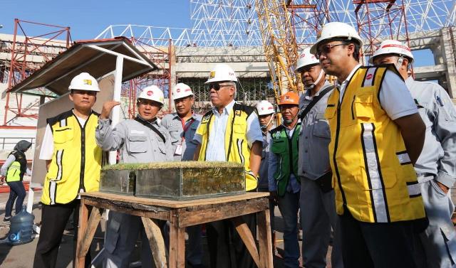 INRASTRUKTUR – Progres pembangunan Stadion Manahan yang dibangun bulan Agustus 2018 dan saat ini progresnya sudah 53%. Menteri Pekerjaan Umum dan Perumahan Rakyat (PUPR) Basuki Hadimujono yang mengunjungi lokasi pembangunan Stadion Manahan, Solo, Rabu, (1/5) kemarin menargetkan bisa rampung sesuai jadwal yakni bulan September 2019.
