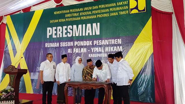 Peresmian Rusun Pondok Pesantren Al Falah Yayasan Pendidikan Islam (YPI) Al Hikam di Kabupaten Madiun, Jawa Timur.