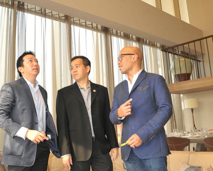 Marketing Director PT Sutera Agung Properti Boy Noviyandi (kiri) di Show Unit Saumata 1