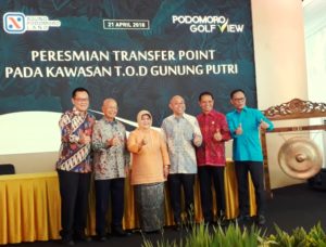 BERITA PROPERTI – Fasilitas Kawasan superblok Podomoro golf view, semakin lengkap dengan diresmikannya transfer point LRT. Peresmian Transfer Point LRT Gunung Putri di kawasan Podomoro Golf View, Cimanggis yang dilakukan pada sabtu 21 April 2018 lalu dihadiri Presiden Direktur PT Agung Podomoro Land Tbk, Cosmas Batubara, Wakil Presiden Direktur, Indra Widjaja Antono, Kepala Badan Pengelola Transportasi Jabodetabek (BPTJ), Bambang Prihartono, Direktur Utama PPD, Bpk. Pande Putu Yasa, Direktur Komersial dan Pengembangan Usaha Damri, Bpk Tatan Rustandi.